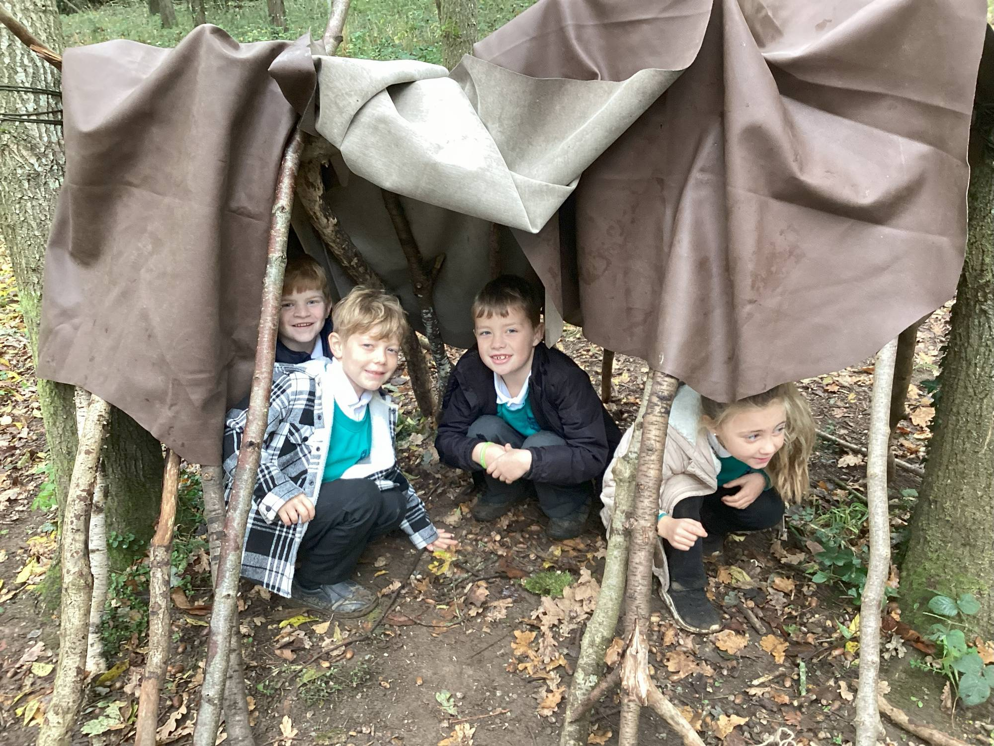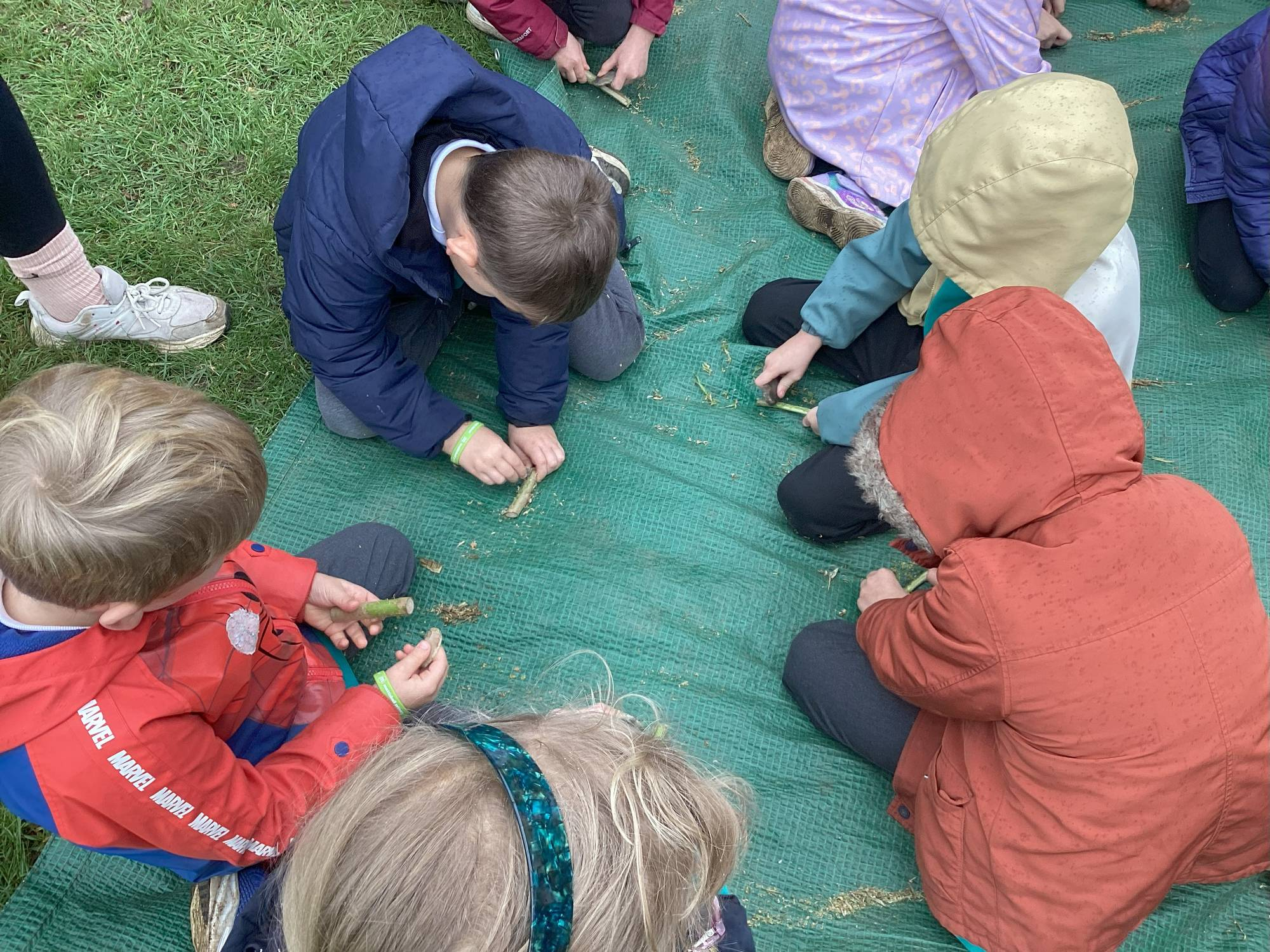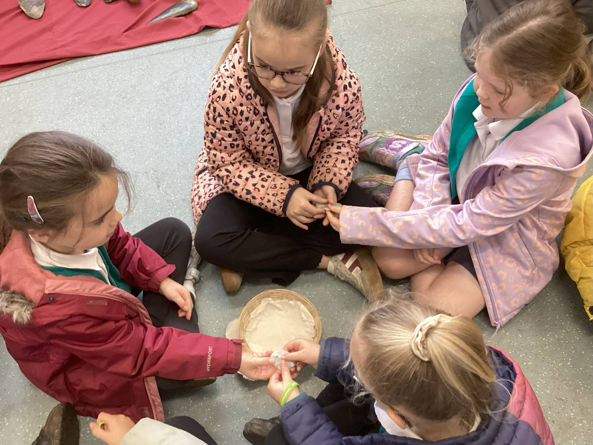 They took part in a range of activities, learning about what life was like for people during the Neolithic period. They used various tools to see what farming was like and learnt about how people used animals for different purposes. They practised making their own shelters and had a go at knapping with a piece of flint. They finished the day, practising some hunting skills and using pretend spears.