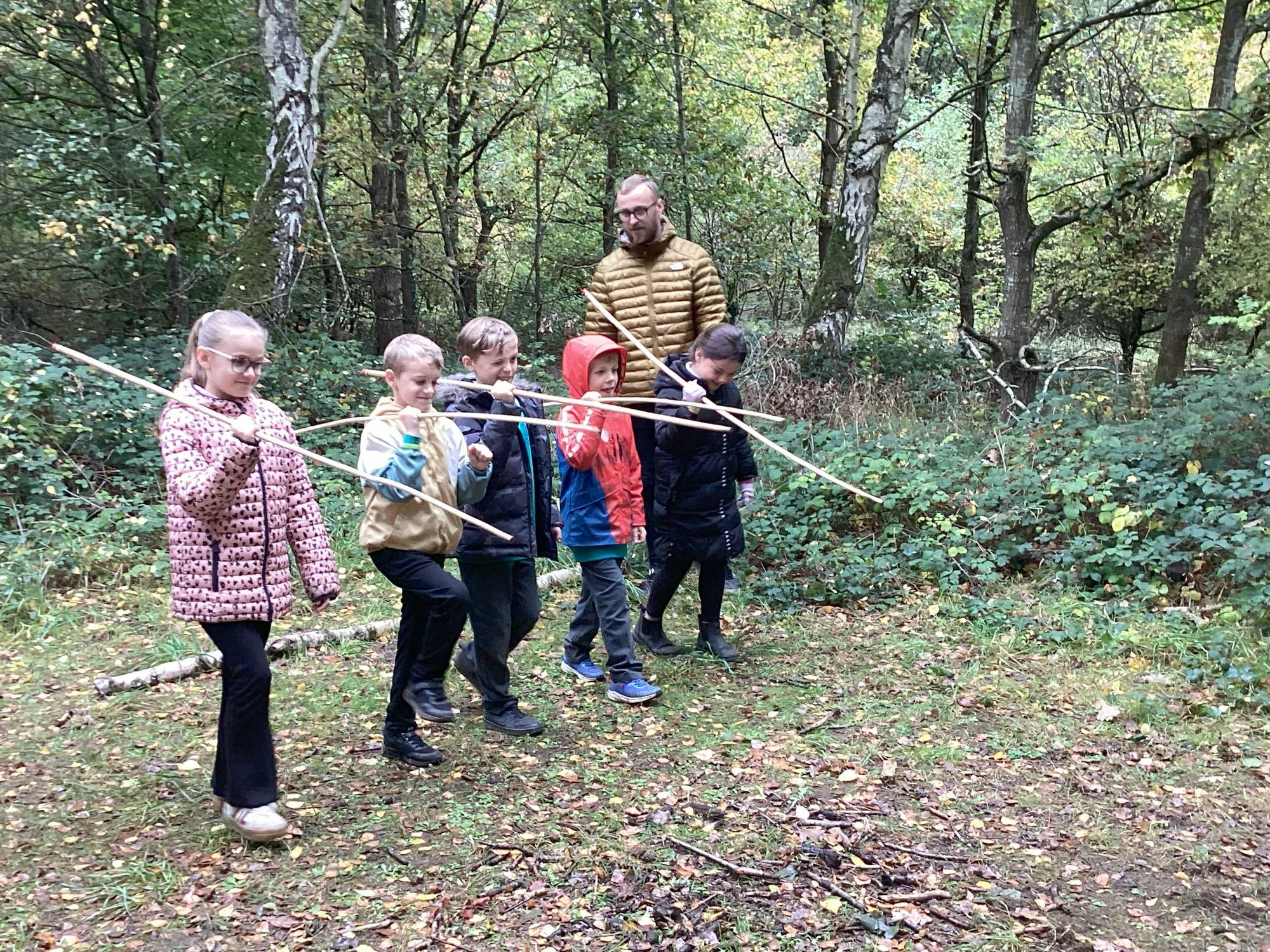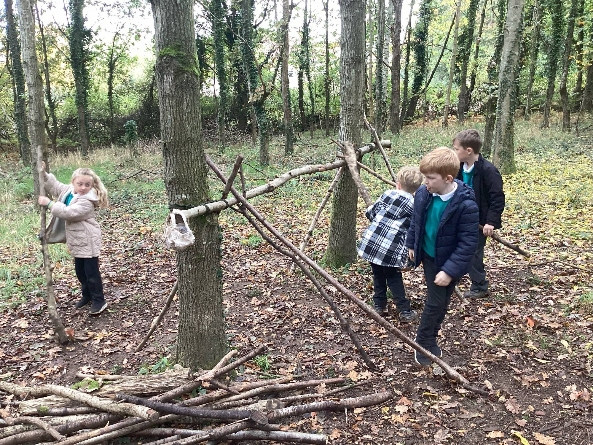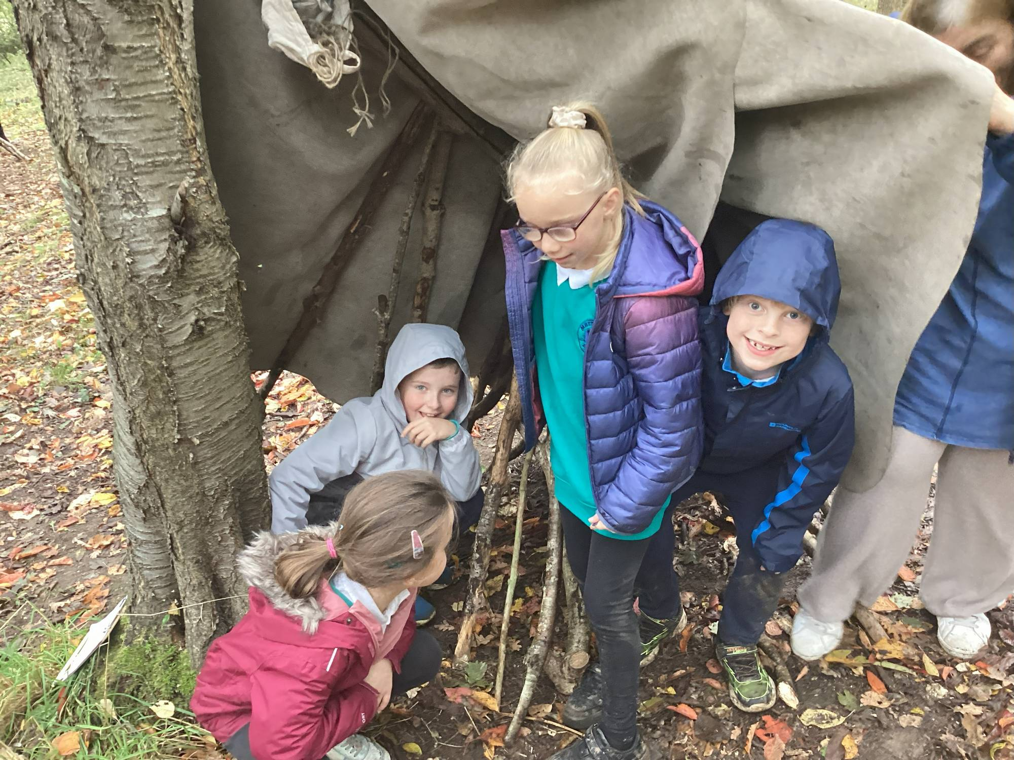 They took part in a range of activities, learning about what life was like for people during the Neolithic period. They used various tools to see what farming was like and learnt about how people used animals for different purposes. They practised making their own shelters and had a go at knapping with a piece of flint. They finished the day, practising some hunting skills and using pretend spears.