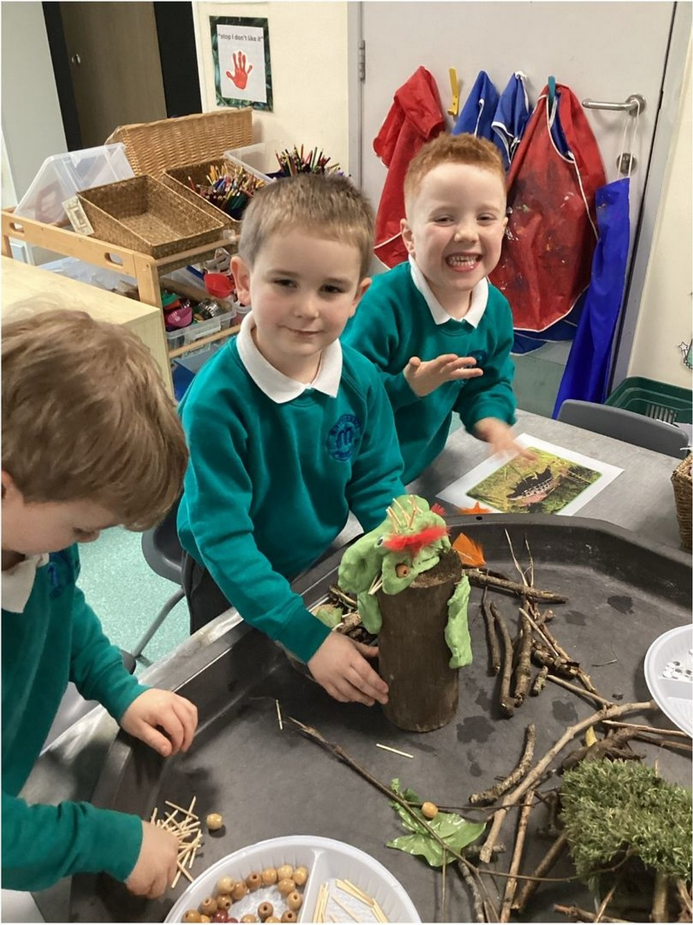 Reception discussed different dinosaurs and their adaptions to different environments, e.g. scales, feathers, and spikes. We then explored the different features of dinosaur environments and children were encouraged to create their own habitats and dinosaurs out of play dough and natural objects.