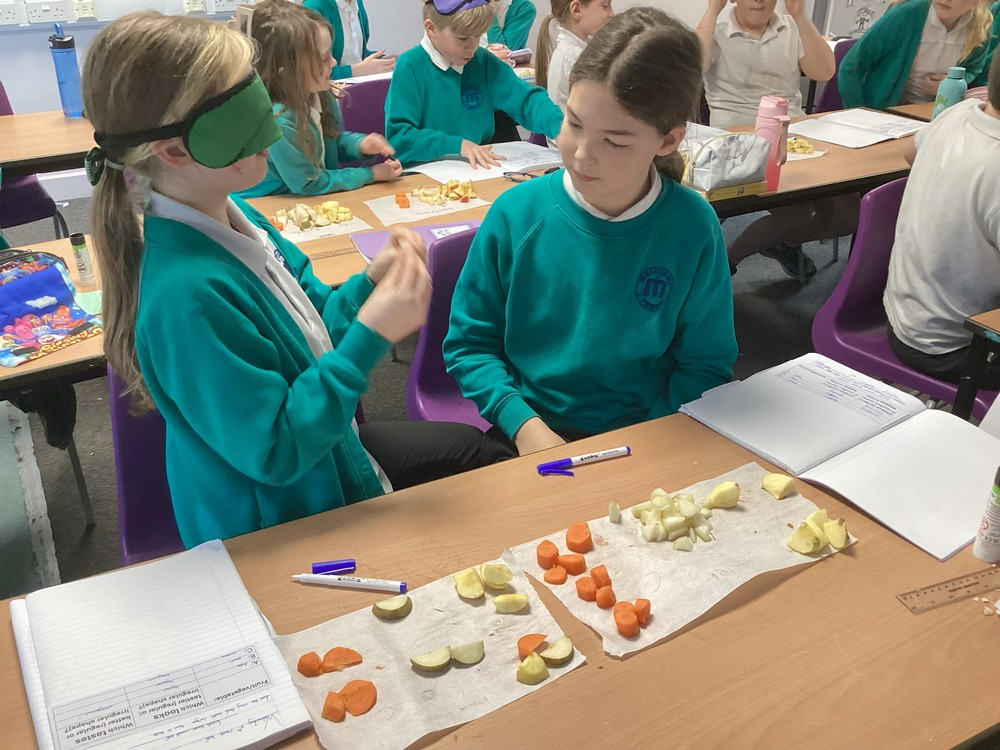 We discussed the fact that much of our food is wasted every day because it looks slightly wonky or isn’t the right size for supermarkets to stock. The children compared the appearance of apples, pears and carrots and then worked in pairs to conduct a blindfolded tasting and comparison. Many were surprised to find that they preferred the taste of the irregular-shaped food. They might well become champions of wonky food on their next family shopping trip.
