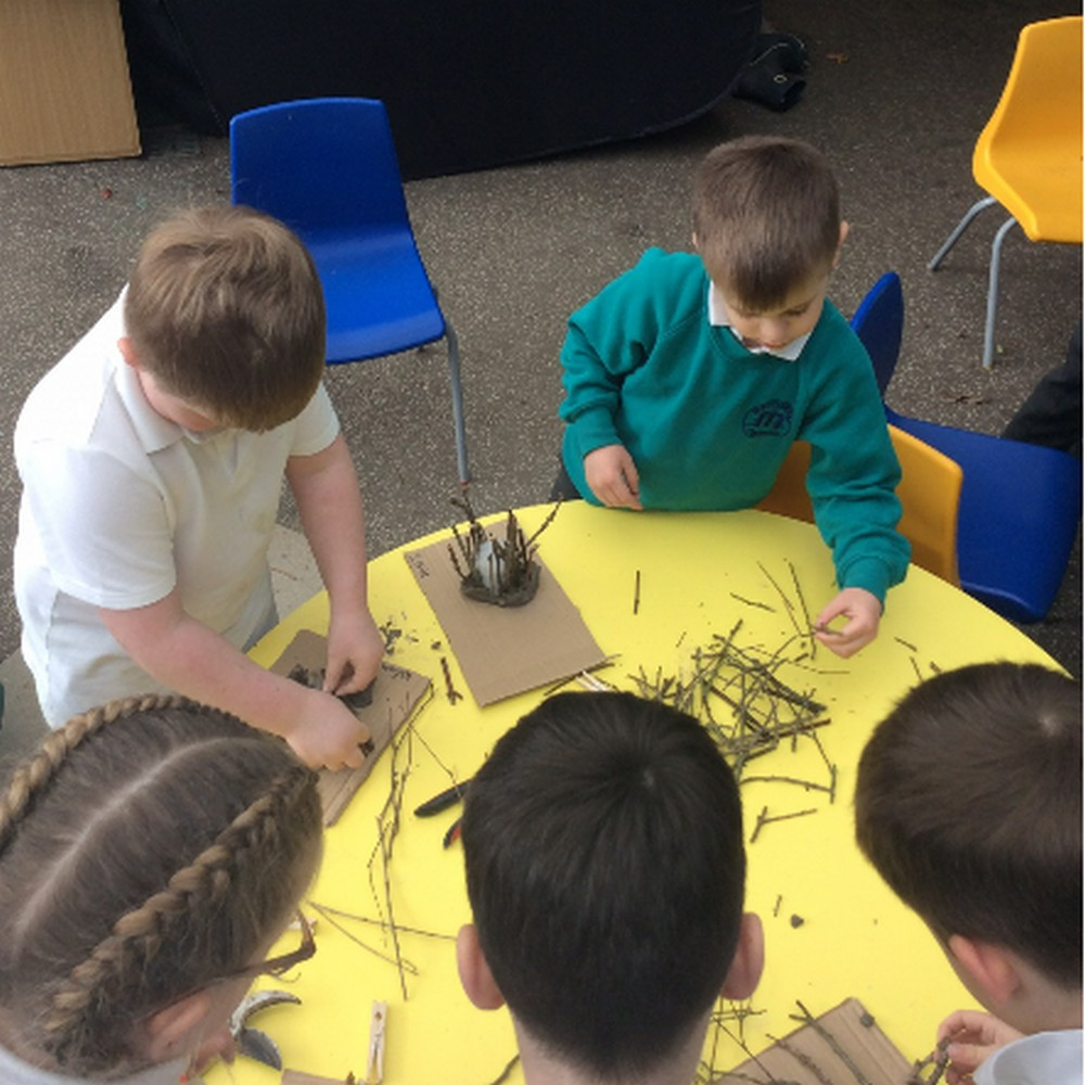 As a class the children learnt more information about birds building nests before they designed their own birds nest. The children the went outside to build their own nest using different materials. The children had to think about the materials they used to insure their nests were strong and weather proof.