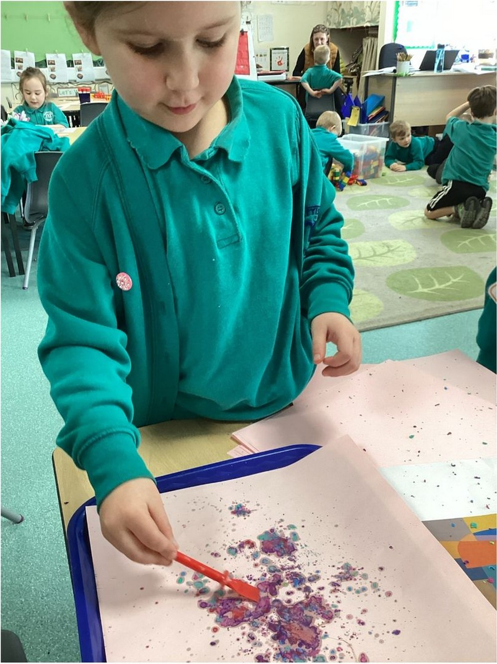 Reception children explored crayons at room temperature, we found that they were a solid. After this we learnt what a prediction was and made some great suggestions about what may happen when the crayons are heated. We then placed crayon shavings on a piece of paper and melted them with a hairdryer and observed what happened. We found that the crayons made a paint like texture that could be spread.